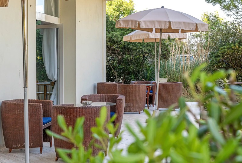 Garden, library, bar, swimming pool (at partner hotel Adria).FAMILIES