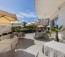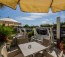 Terrazza-giardino attrezzata con tavoli e sedie, hall, bar, sala ristorante con vista panoramica sul mare.FAMIGLIE